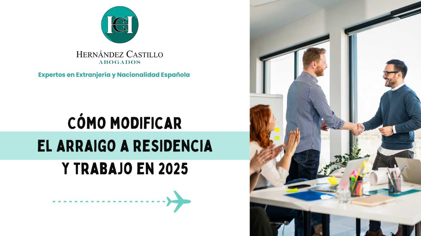 Por ello, los letrados/as y demás profesionales de Hernández Castillo Abogados, como expertos en materia de extranjería y nacionalidad española, te contamos en nuestro blog todo y más sobre lo que debes saber para modificar el arraigo a residencia y trabajo en 2025. ¡Sigue leyendo!